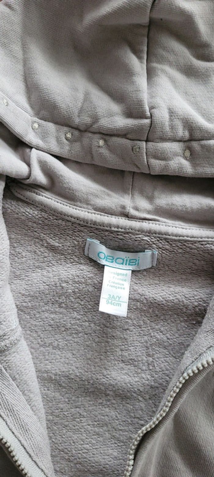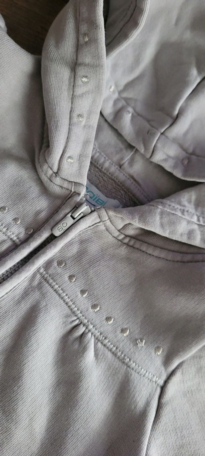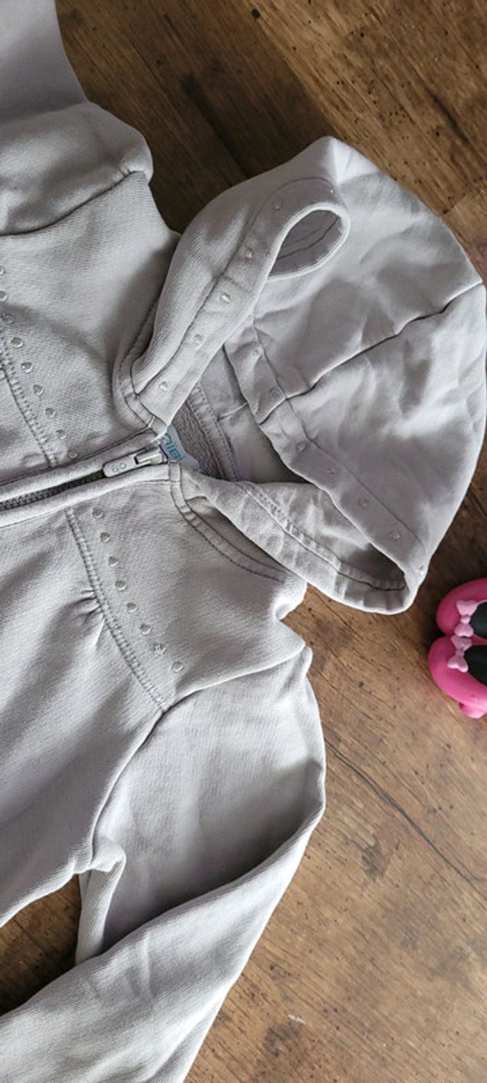 Joli gilet zippé avec capuche. Gris et broderies argentées. 3 ans 94 cm #fille3ansnicopey 😃