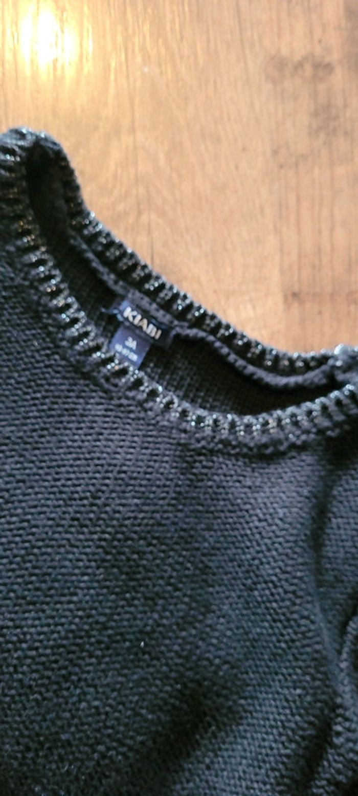 Tout noir Très bon état la photo ressort mal mais pas de bouloches. joli détail au col avec un fil argenté #fille3ansnicopey