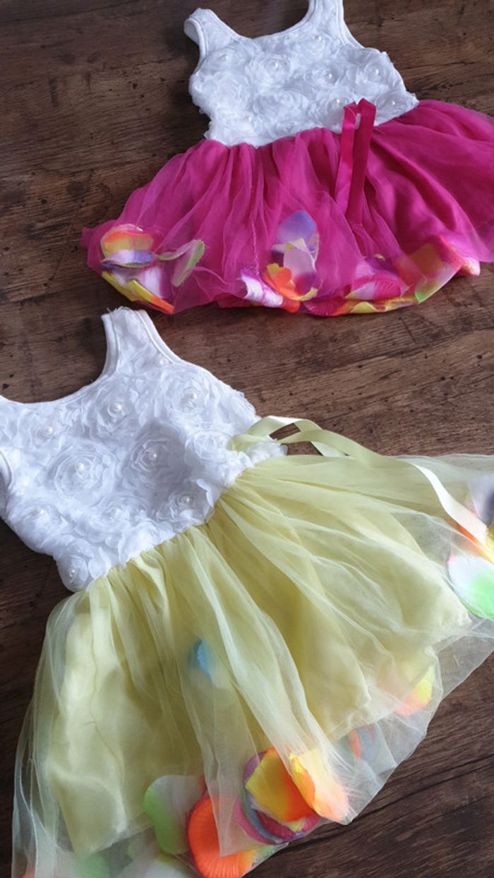 Robes achetées sur Aliexpress dont la rose reçue avec un défaut (voir derniere photo) en cadeau. Ma fille l'a porté et vu quelle a des volants ca ne se voit pas. #fille2ansnicopey