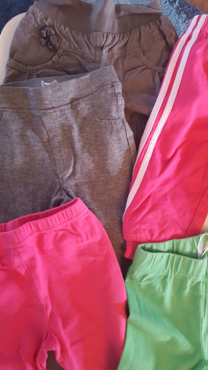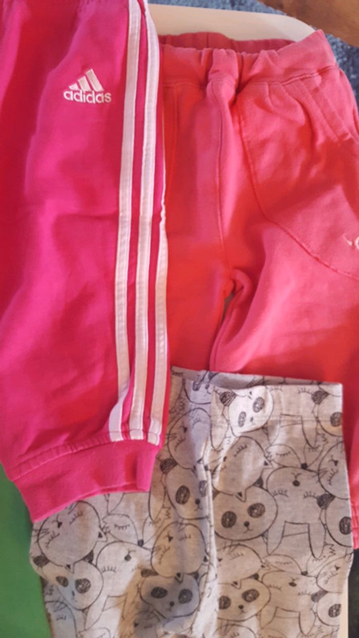 3 leggings (gris vert et rose) 1 jegging gris h&m 1 pantalon gris vert baudet et 2 survêtements fille (Adidas et domyos) #9moisnicopey #12moisnicopey