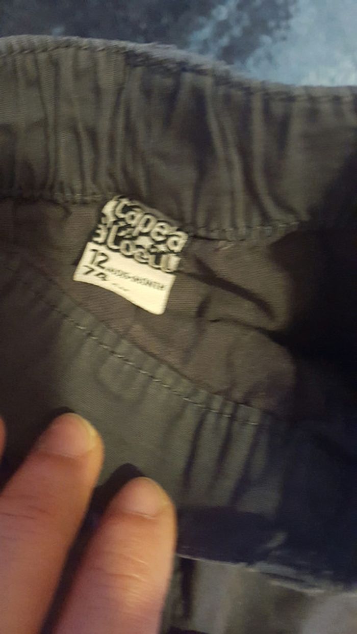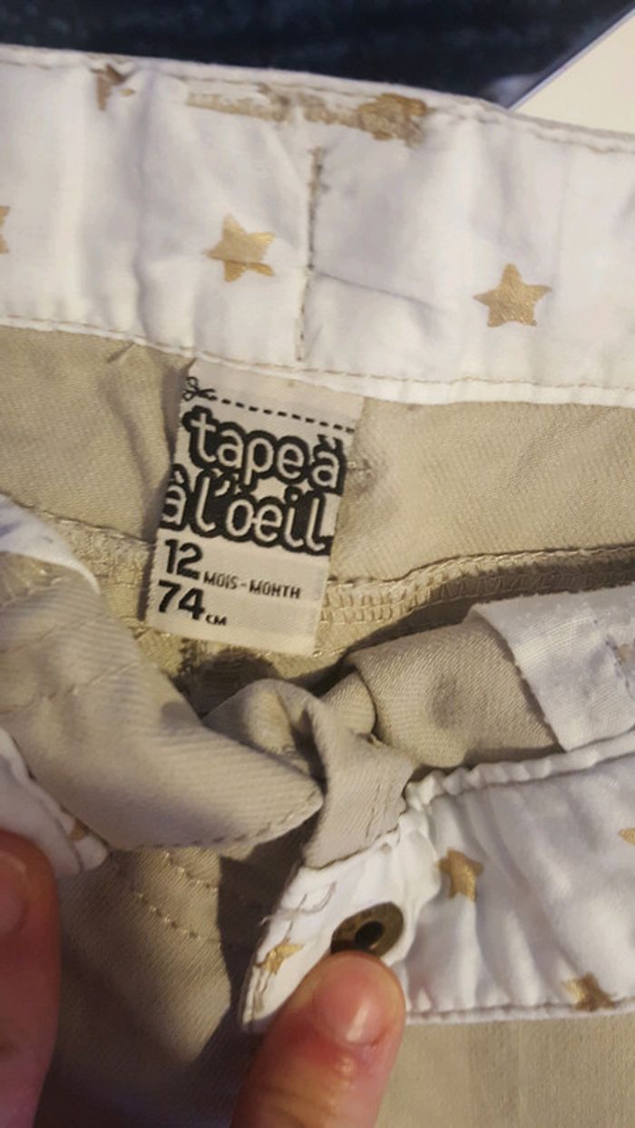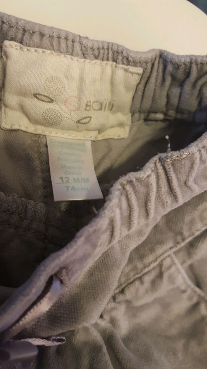 Lot de 4 pantalons dont 2 jeans bon état Jean clair h&m, pantalon gris velours obaibi ,Jean beige et pantalon gris charbon tape à l'oeil. Taille 12 mois #12moisnicopey