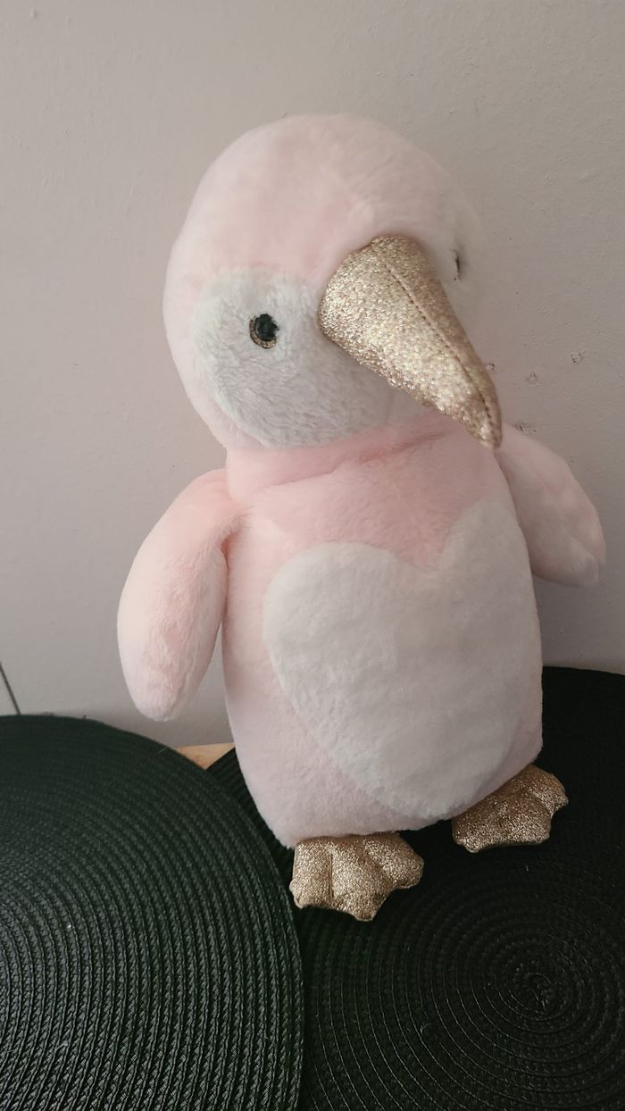 Petjes World Peluche douce pingouin rose et blanc en forme de cœur doré - photo numéro 1