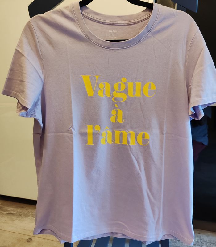 T-shirt manches courtes taille L "kiabi" mauve avec transfert sur le devant. En parfait état. D'autres vêtements sont en vente dans mon dressing, réduction automatique de 10 à 20% sur les lots à partir de 2 articles achetés.
