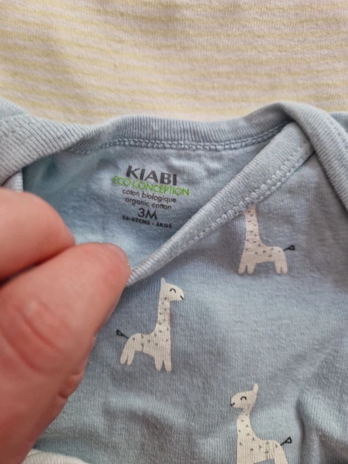 Lot 4 bodies bébé garçon manches courtes bleu jaune blanc 100% coton T3mois TBE kiabi - photo numéro 2