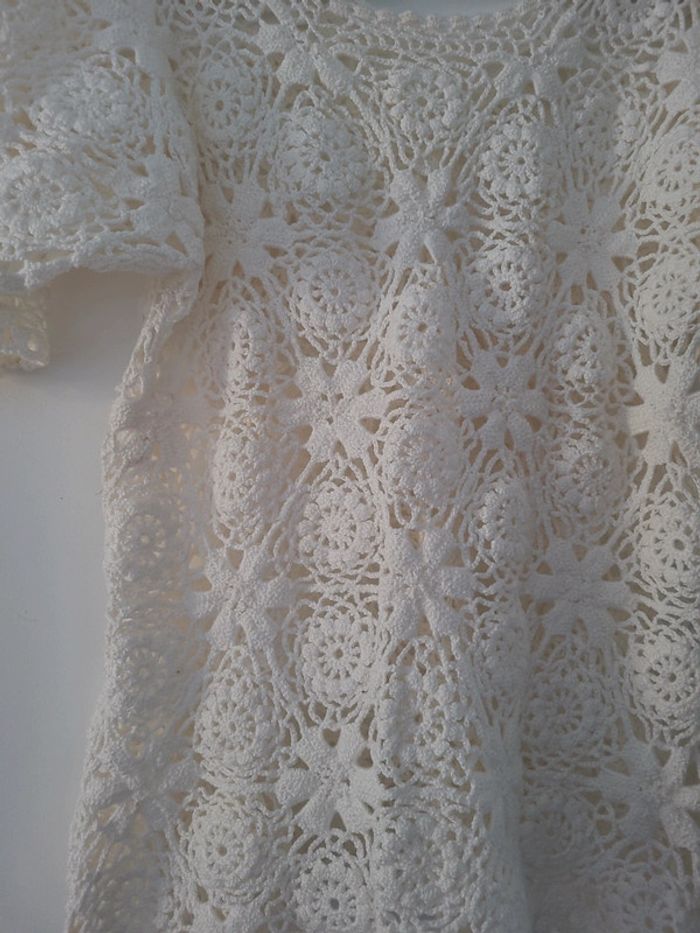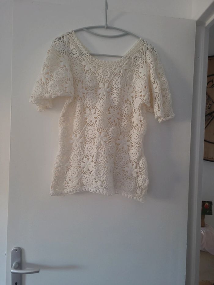 Blouse manche courte femme été crochet blanc TBE Taille Unique - photo numéro 2