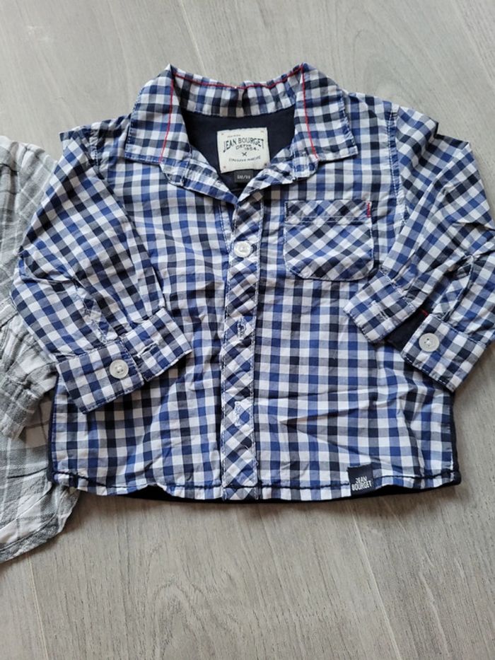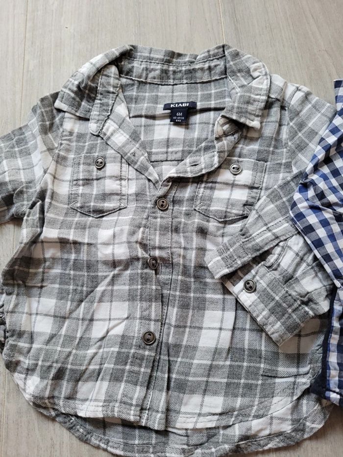 Lot 2 Chemise bébé manche longue gris carreaux ,bleu à carreaux 6 mois kiabi TBE - photo numéro 3