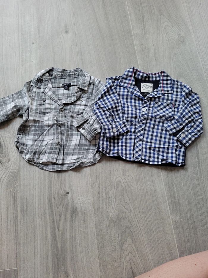 Lot 2 Chemise bébé manche longue gris carreaux ,bleu à carreaux 6 mois kiabi TBE - photo numéro 2
