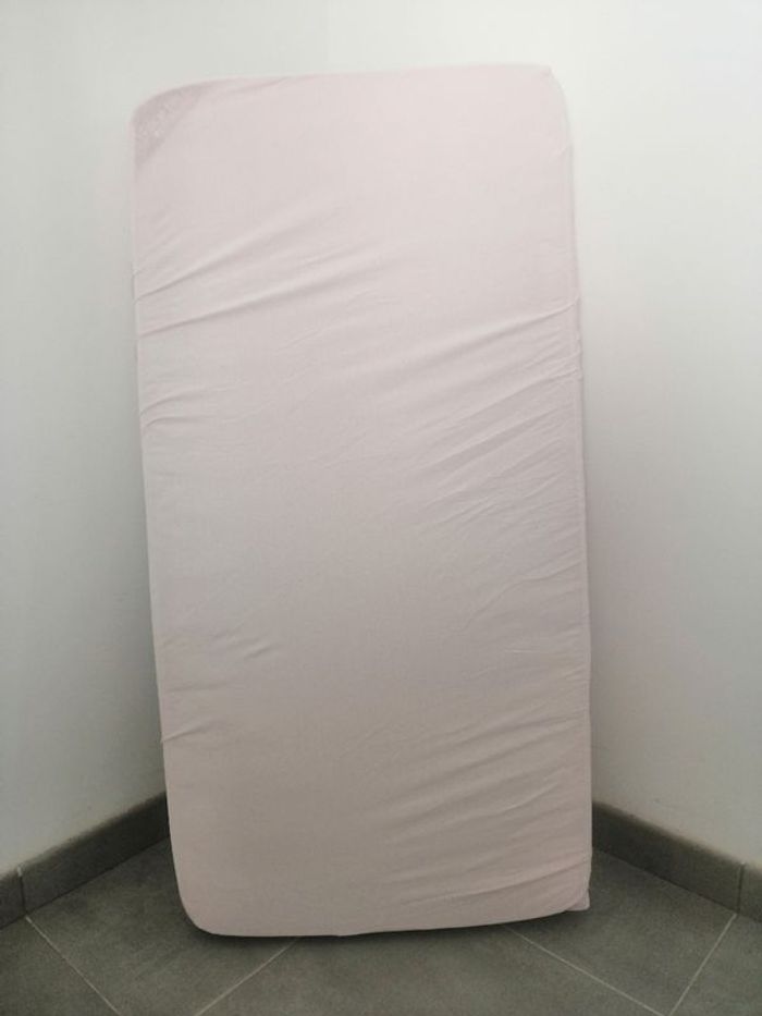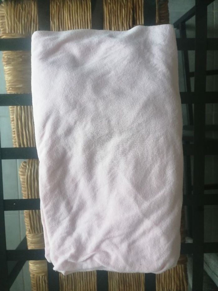 Motif : unis. Tissus rose pale jersey. Taille lit bébé : 60 x 120. Taille du retour : environ 18 cm. Marque : babycalin.