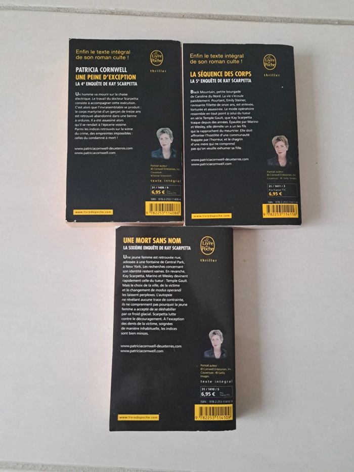 Série Kay scarpetta 4,5 et 6 Une peine d'exception La séquence des corps Une mort sans nom Traces d'usure cf photos