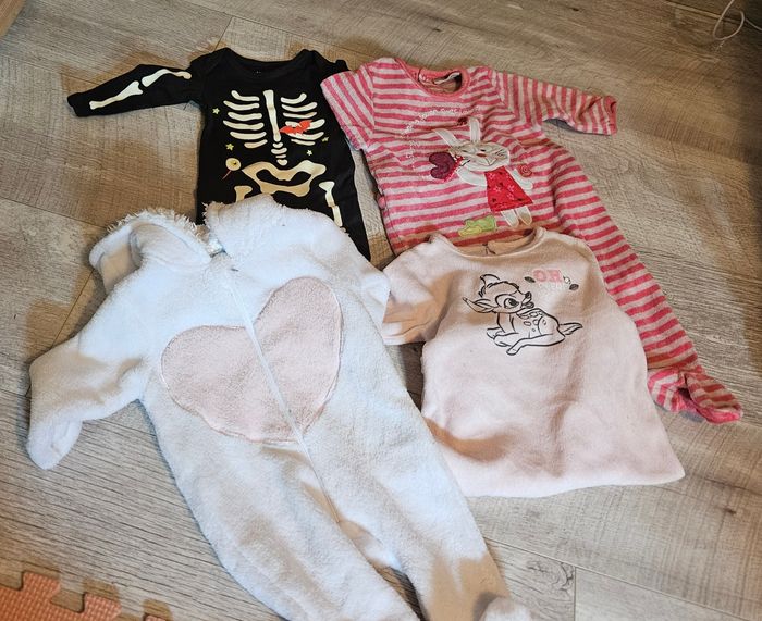 Lot pyjama fille dont 1 c'est une grenouillère avec capuche.
