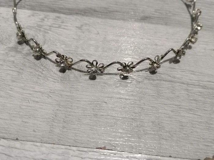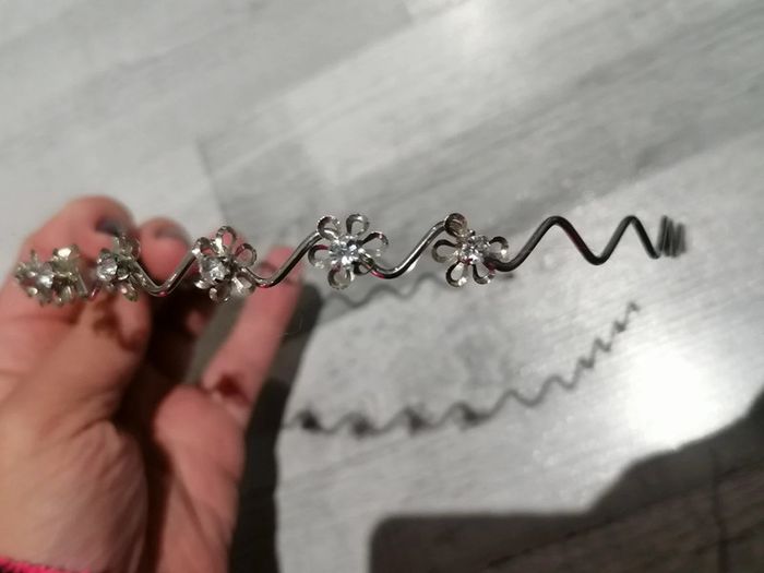 Serre tête fleur strass En l'état Manque une boule de côté Et les fleurs ont des défauts un peu plié ou manque des pétales mais dans l ensemble reste correct Jolie