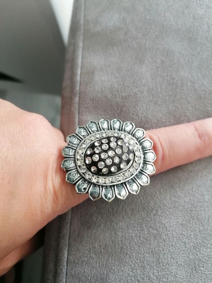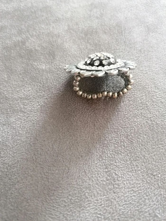 Bague extensible fleur Argenté strass Neuve! Fantaisie