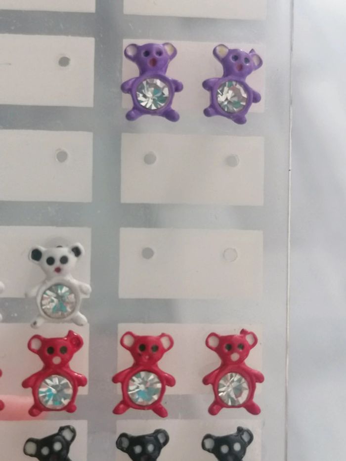 Jolie paire de boucles d oreilles ourson avec brillant strass Idée cadeau fillette Fantaisie, attention au allergie 2 euro la paire au choix Neuve Reste : - 1 paire violette - 1 paire blanche - 2 paires rouge - 2 paires noir