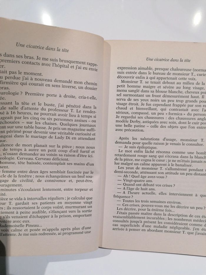 Livre témoignage sur l épilepsie Très bien, me concernant Une cicatrice dans la tête Valérie Pineau-Valencienne 89 FR, oui en francs ☺️ Légèrement jauni