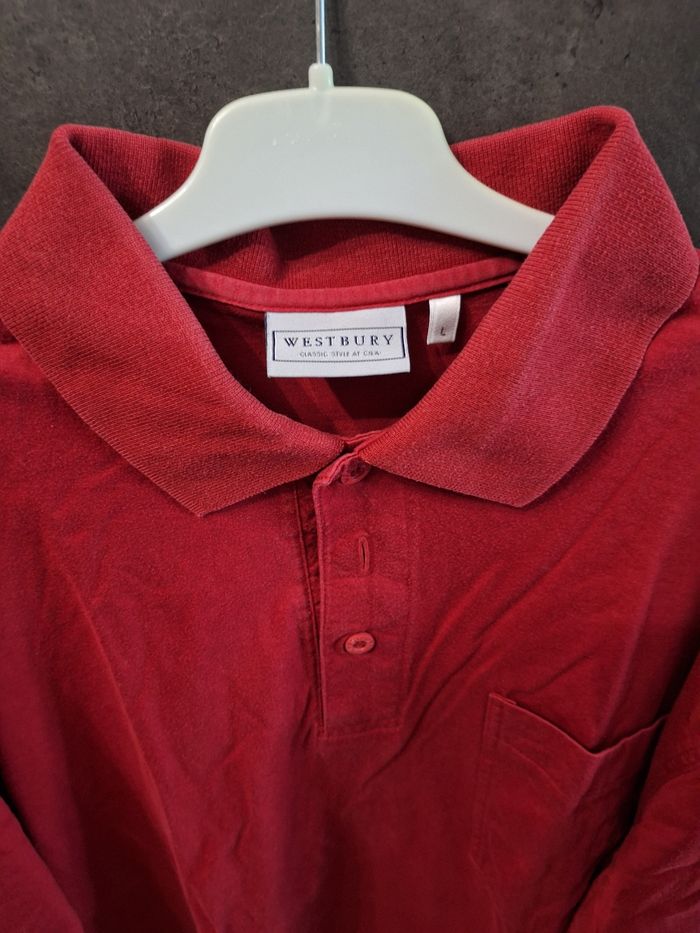 Joli polo manches courtes rouge, poche poitrine, col 3 boutons, marque Westbury de C&A, taille L, porté mais en très bon état