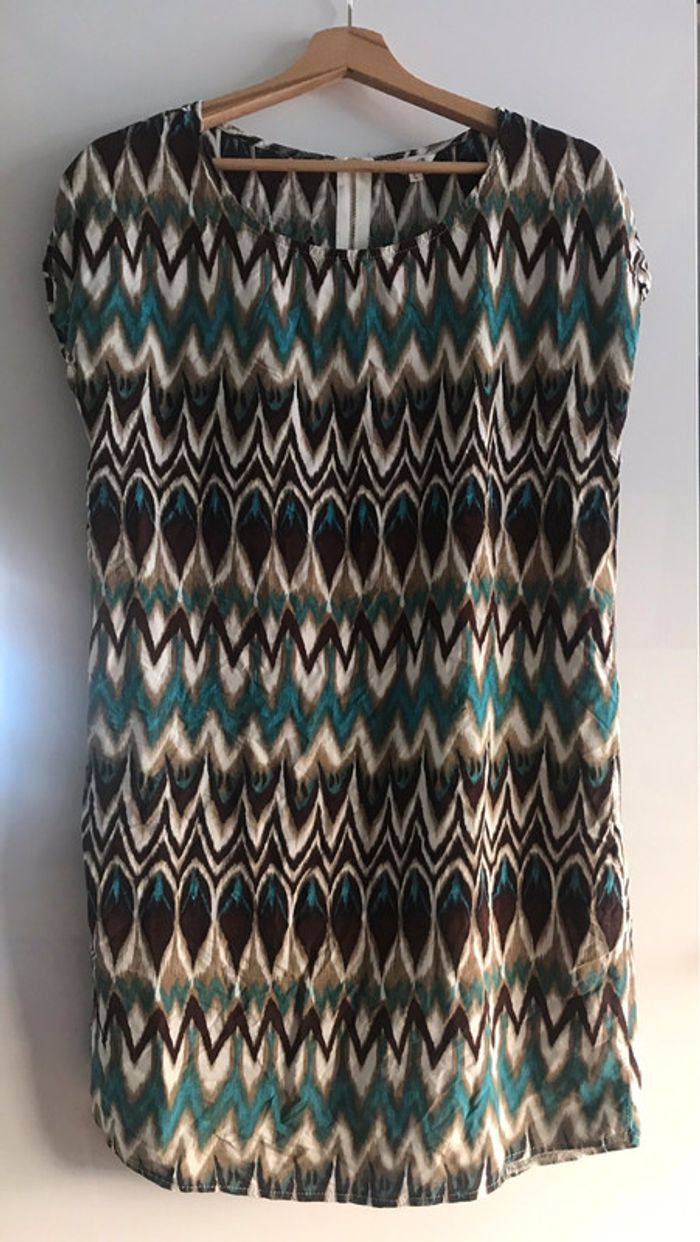 Robe tunique lulu love L motif graphique turquoise écru marron