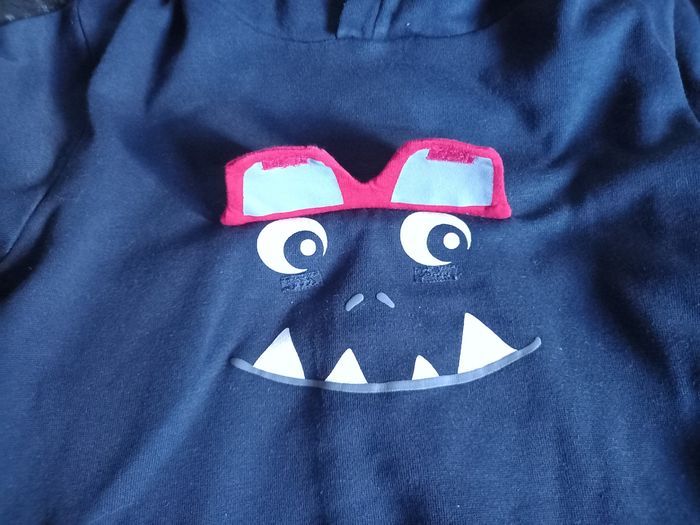 Sweat shirt KIABI 10 ans (138/143), sous les lunettes à scratchs il y a les yeux