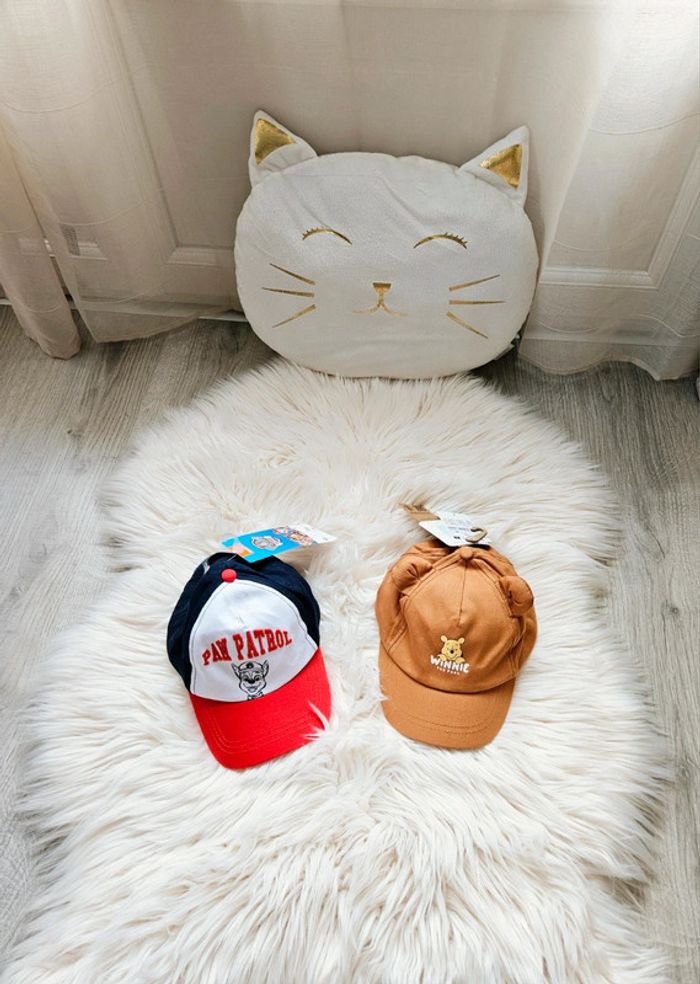🌈 Lot de 2 casquettes, Pat Patrouille achetée chez Orchestra et Winnie achetée chez Kiabi. Une taille 47 et une taille 49 cm: elles taillent grosso modo pareil, environ 12/18 mois 😉. Neuves avec étiquettes 🏷, valeurs neuves 12.99e. 🪴 Pensez à lire ma bio pour plus d'infos! Mon dressing est grand: vêtements de grossesse, puériculture, jeux et jouets etc, et surtout beaucoup de vêtements et chaussures pour fille et garçon. 🍀 Pour voir mes autres annonces de vêtements bébé et petit garçon: #ephemereshadeboy ✨️ Pour voir uniquement les accessoires: #ephemereshadeboyaccessoires #casquette #chapeau #patpatrouille #winnie #kiabi #Orchestra #pawpatrol