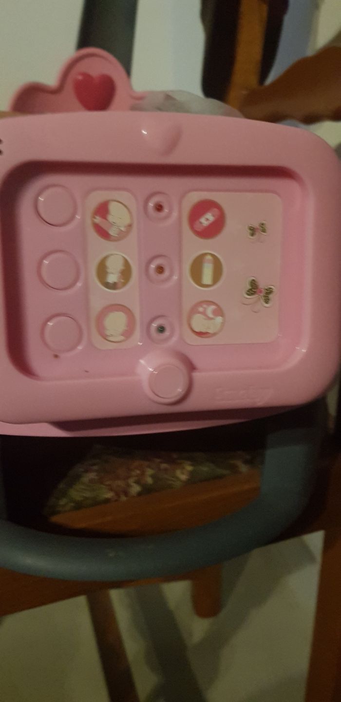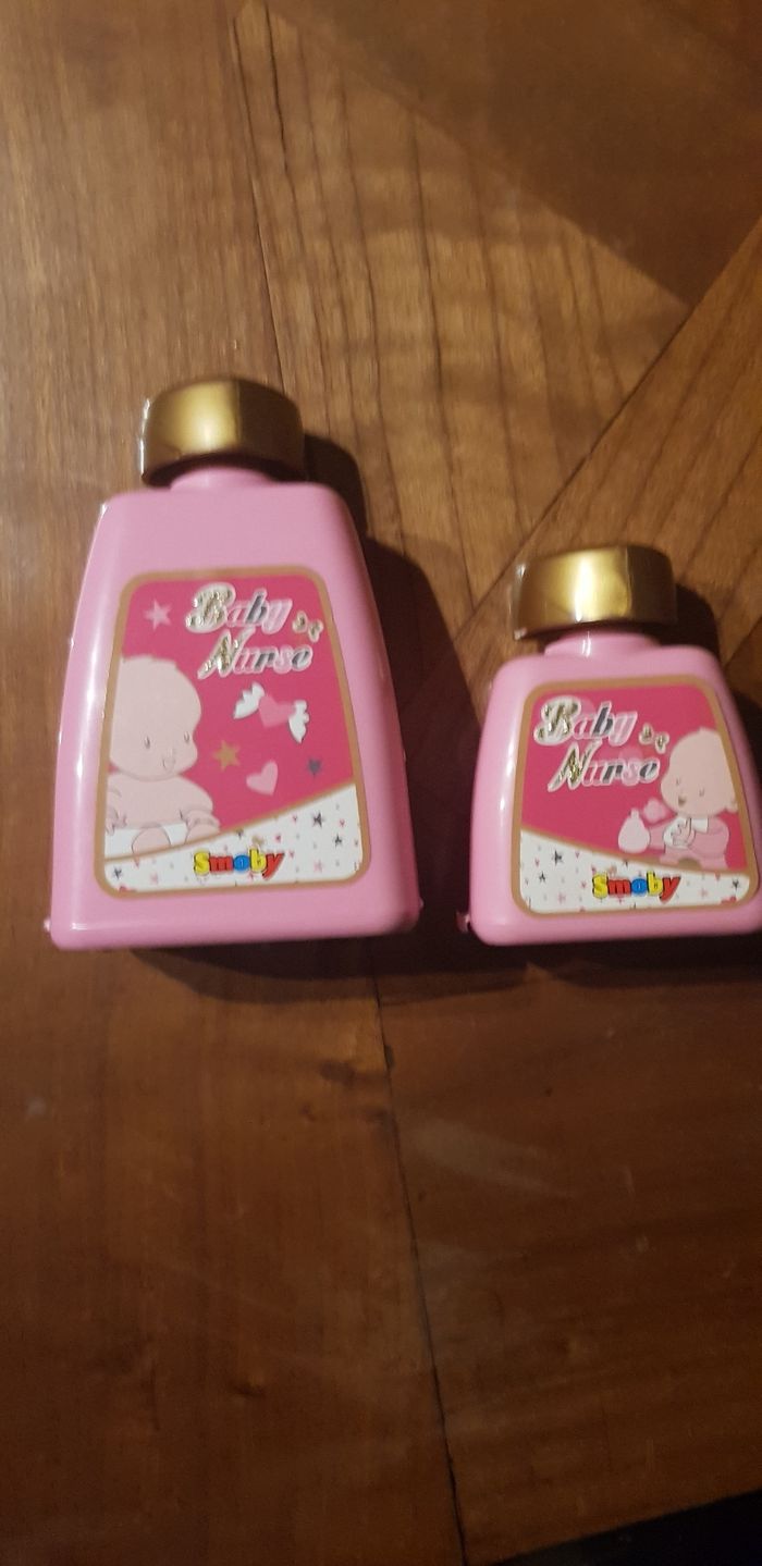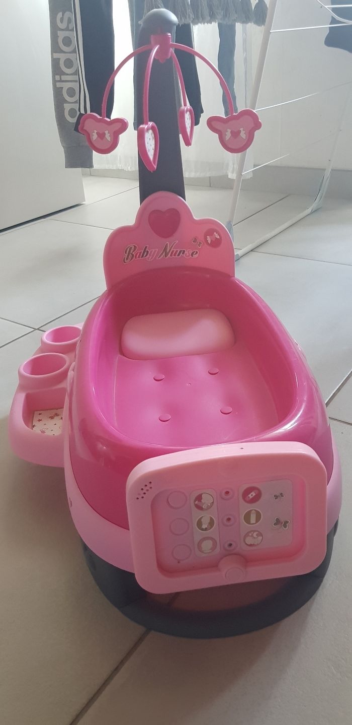 Vends nursery fille avec poupon avec une tâche au dos avec la tablette, et 2 flacons, bon état