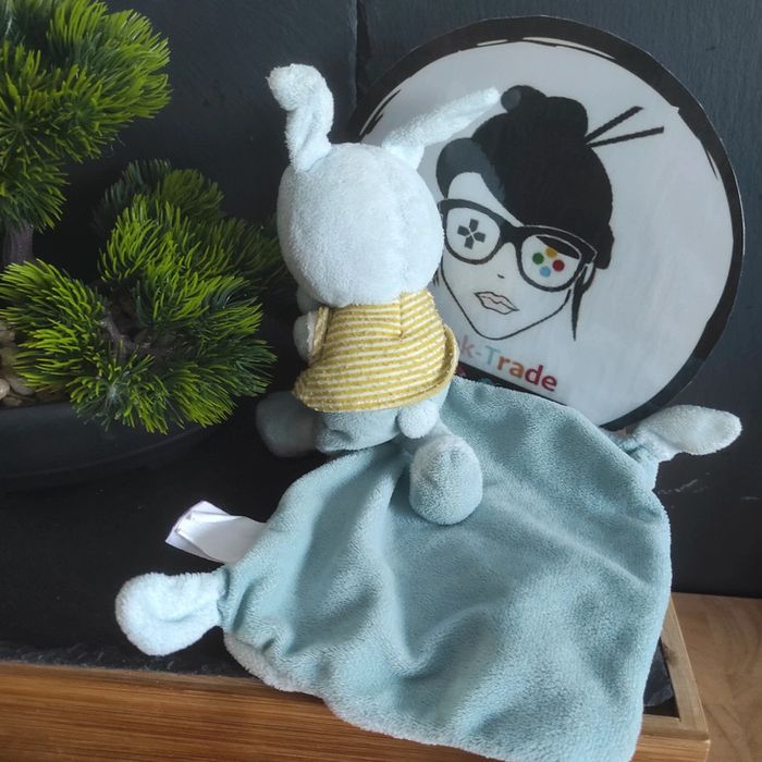 Doudou lapin bleu vert rayé avion Pommette mouchoir nuage etoile t-shirt Ours - photo numéro 1