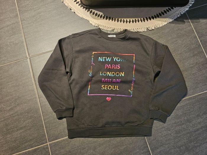 Bonjour 👋 Je vend ce : 👉 pull fille " primark" 11.12 ans Couleur gris avec écriture multicolore Maison 🏠 non fumeur et sans animaux .