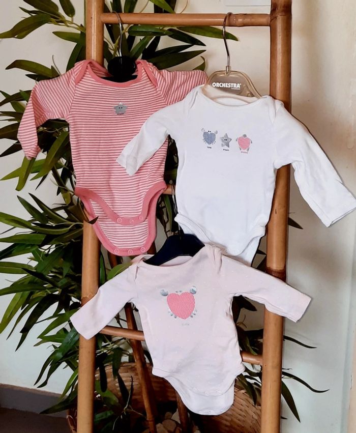 Lot de 3 body manche longue 1 mois Obaibi Très bon état #elowdy1fille1mois