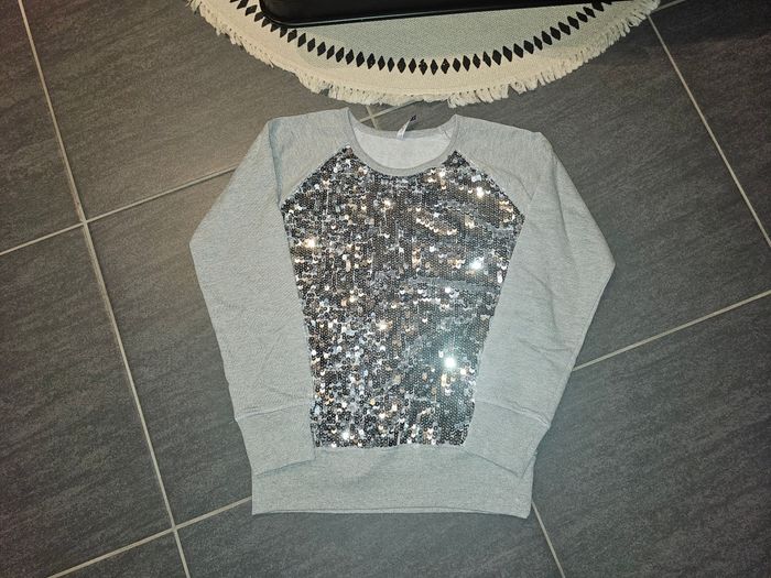 Bonjour 👋 Je vend ce : 👉 pull fille " gemo " 14 ans' Couleur gris avec sequin brillant Maison 🏠 non fumeur et sans animaux .