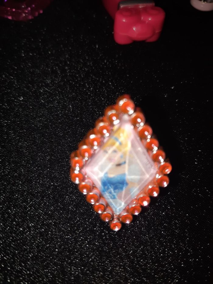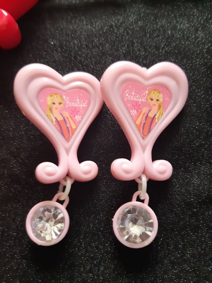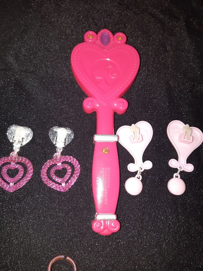 Lot de 2 paires de boucles d oreilles en clips et d une bague Cendrillon de Disney Miroir Barbie (ce n est pas un miroir ce serait trop dangereux il s agit d un papier qui est un peu rayé)