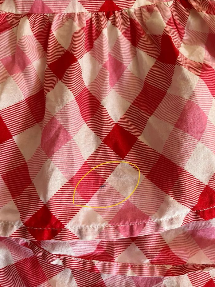Robe légère H&M 6/7 ans (122 cm) qui peut être portée un peu au-delà selon gabarit de l’enfant ~ Un flot en relief sur le devant ~ 100% Coton ~ Je mets en état satisfaisant à cause des imperfections signalées en photos mais honnêtement, la robe est en bon état général; je n’ai vu les imperfections qu’en prenant les photos et pas qd ma fille la réessayée hier ~ Vendue 1€ symbolique ~ Robe relavée / envoi soigné.