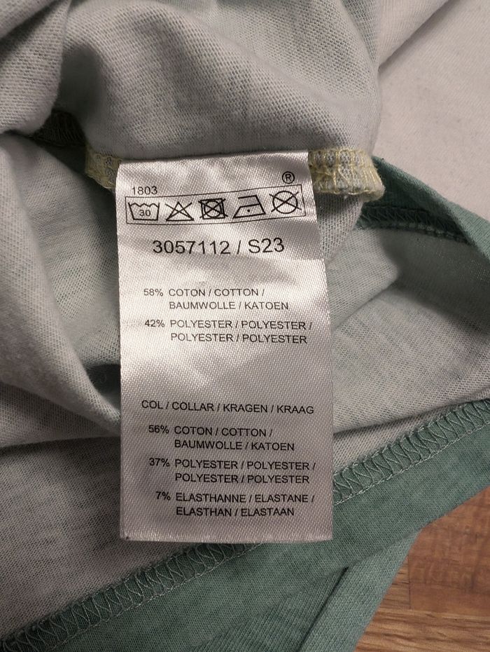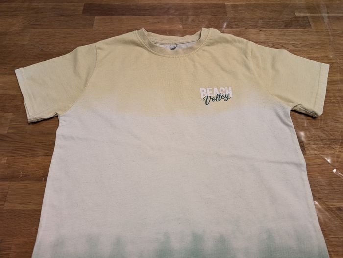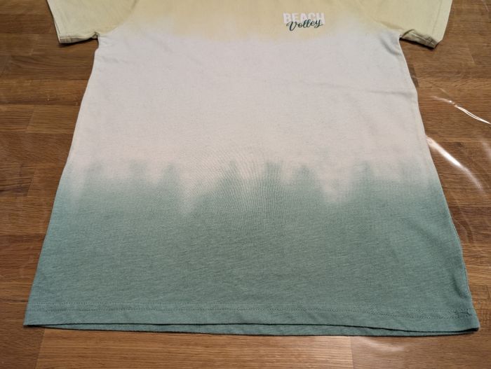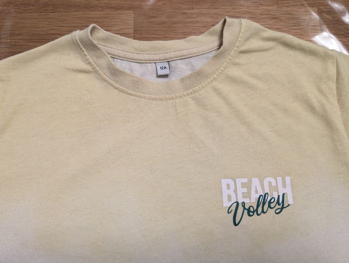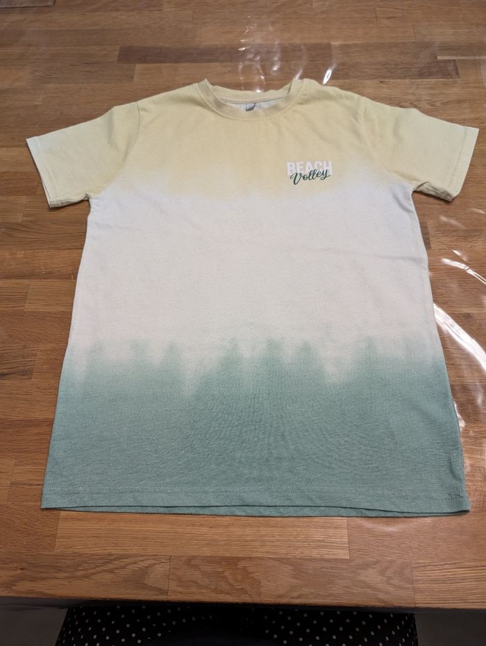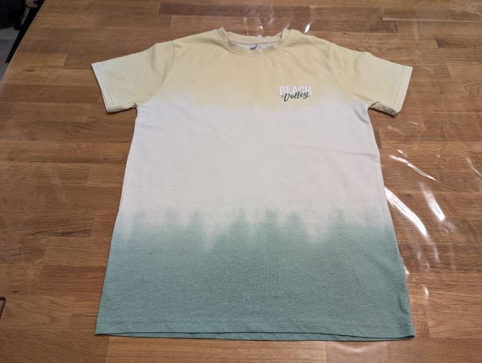 T-shirt garçon 12 ans Coton et polyester , vert blanc et jaune. Bon état général mais de petites bouloches sont présentes.