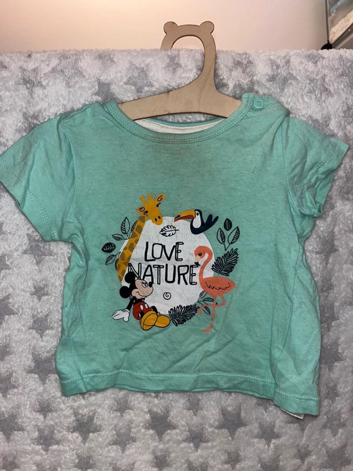 t-shirt vert d’eau petite tâche, disney taille 6 mois