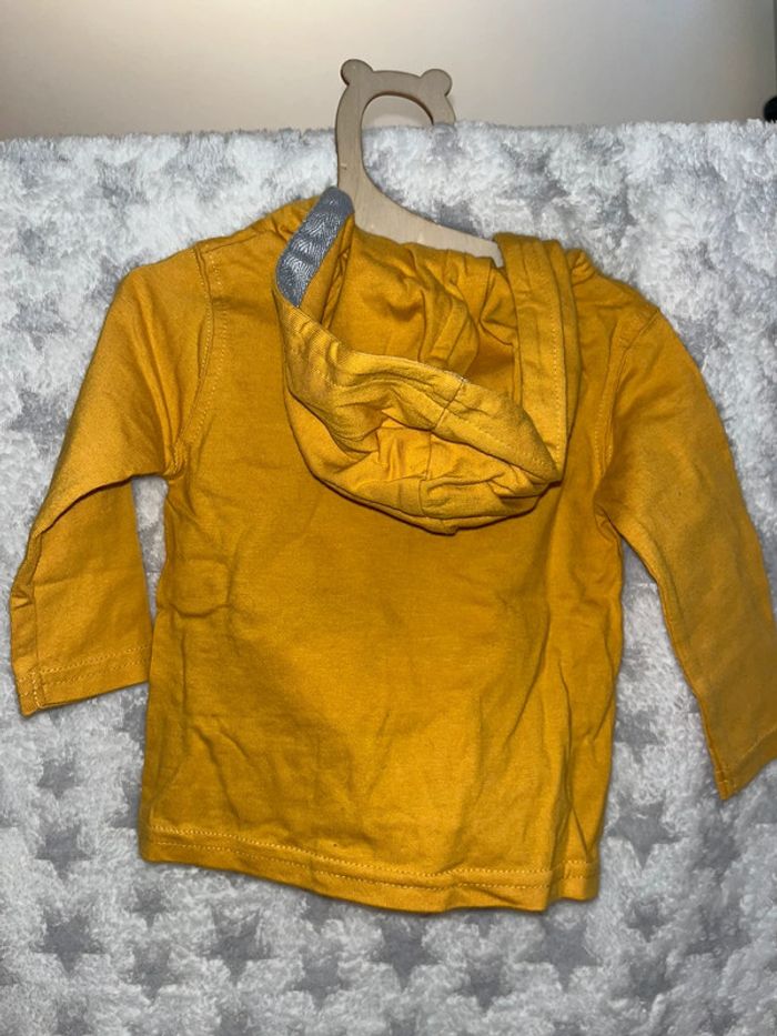 t-shirt à capuche moutarde gémo, taille 3 mois