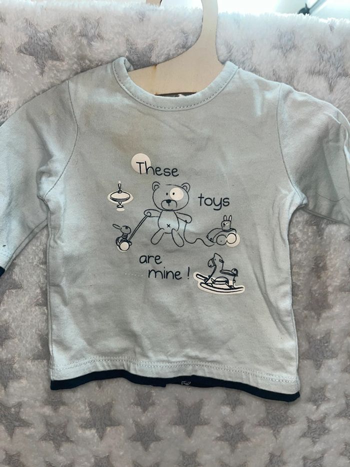 t-shirt manches longue bleu tâché, kitchoun taille naissance