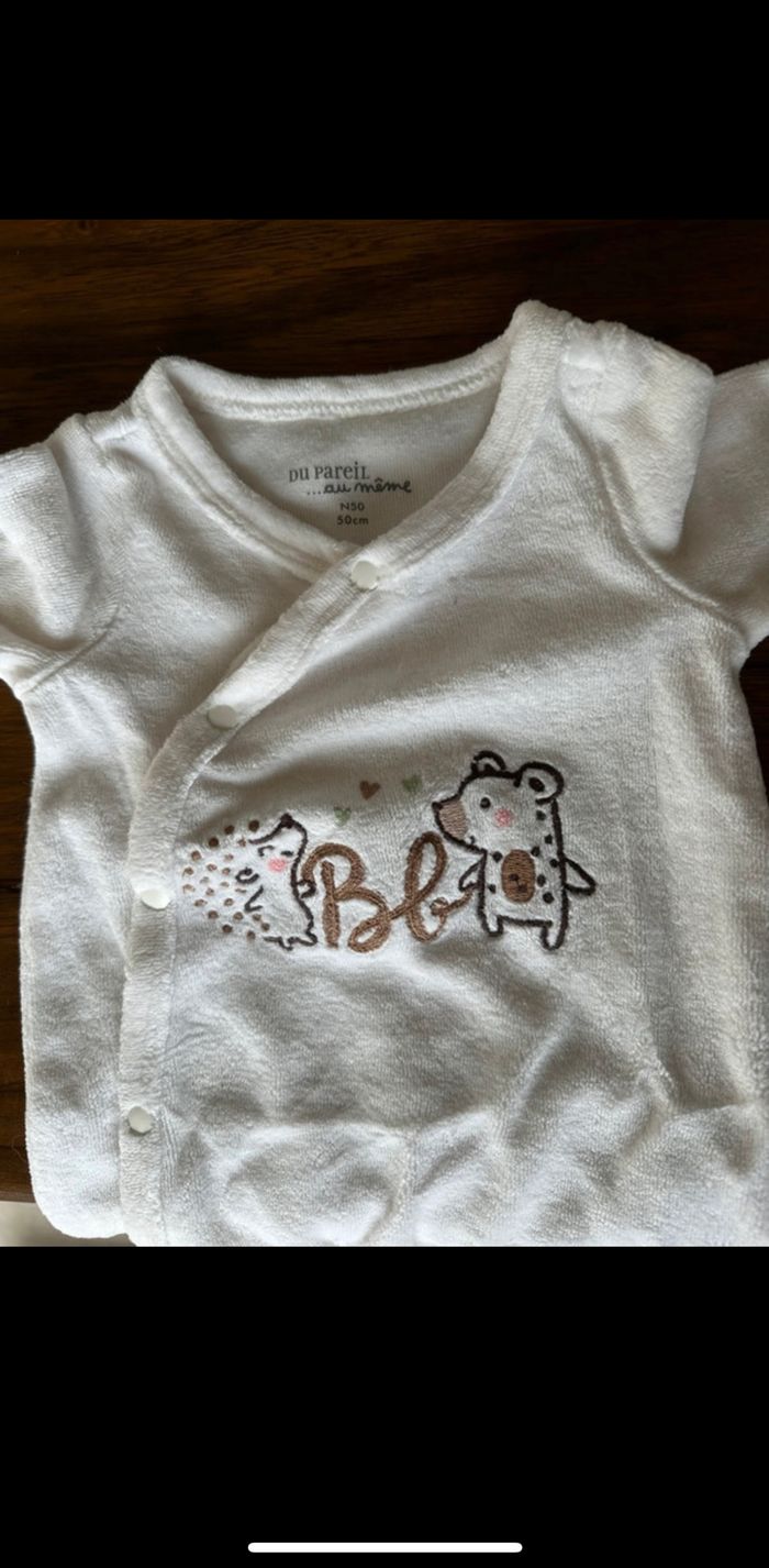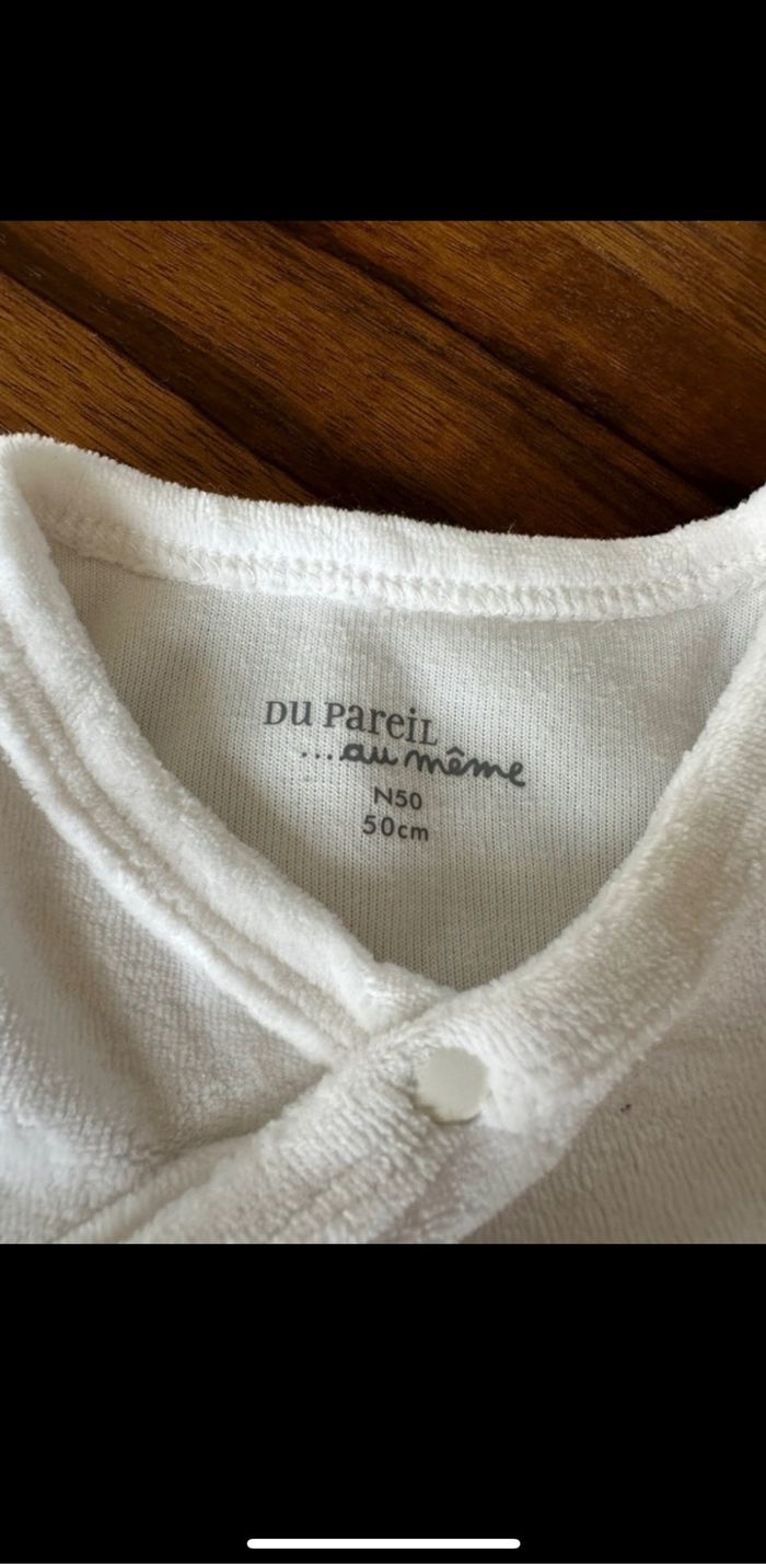 pyjamas velours 0M naissance de la marque du pareil au même . 50cm (taille plutôt grand) État neuf, lavés mais jamais portés. Fermeture par boutons pression à l’avant