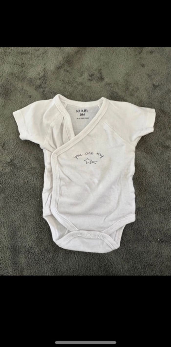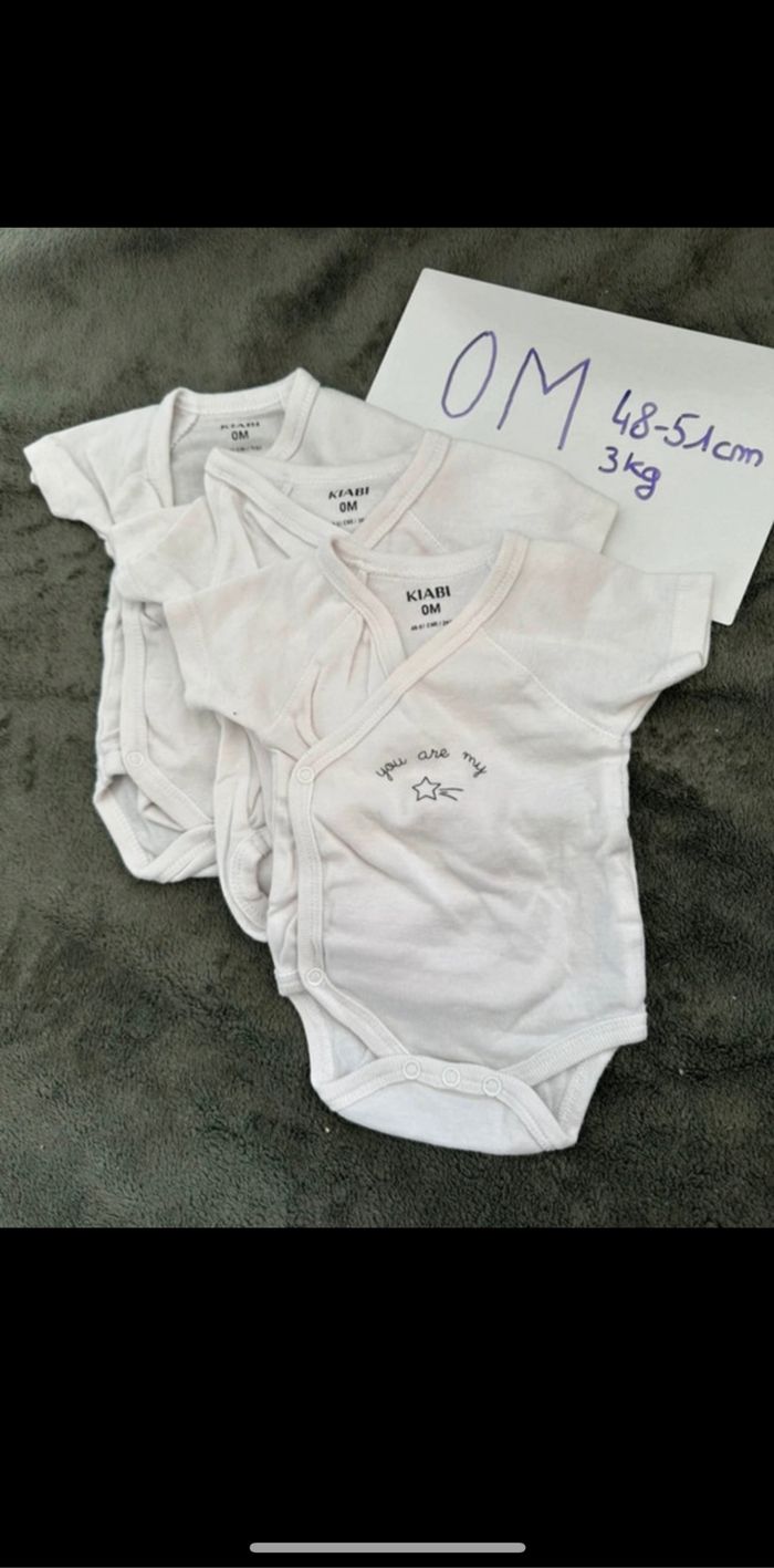 3 bodies 0M naissance, taille jusqu’à environ 1M à manches courtes de la marque KIABI. 48-51cm, 3kg 100% coton. Parfait état, le blanc est très intense et il n’y a aucune tache