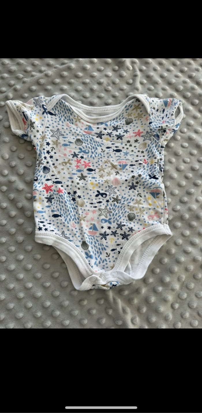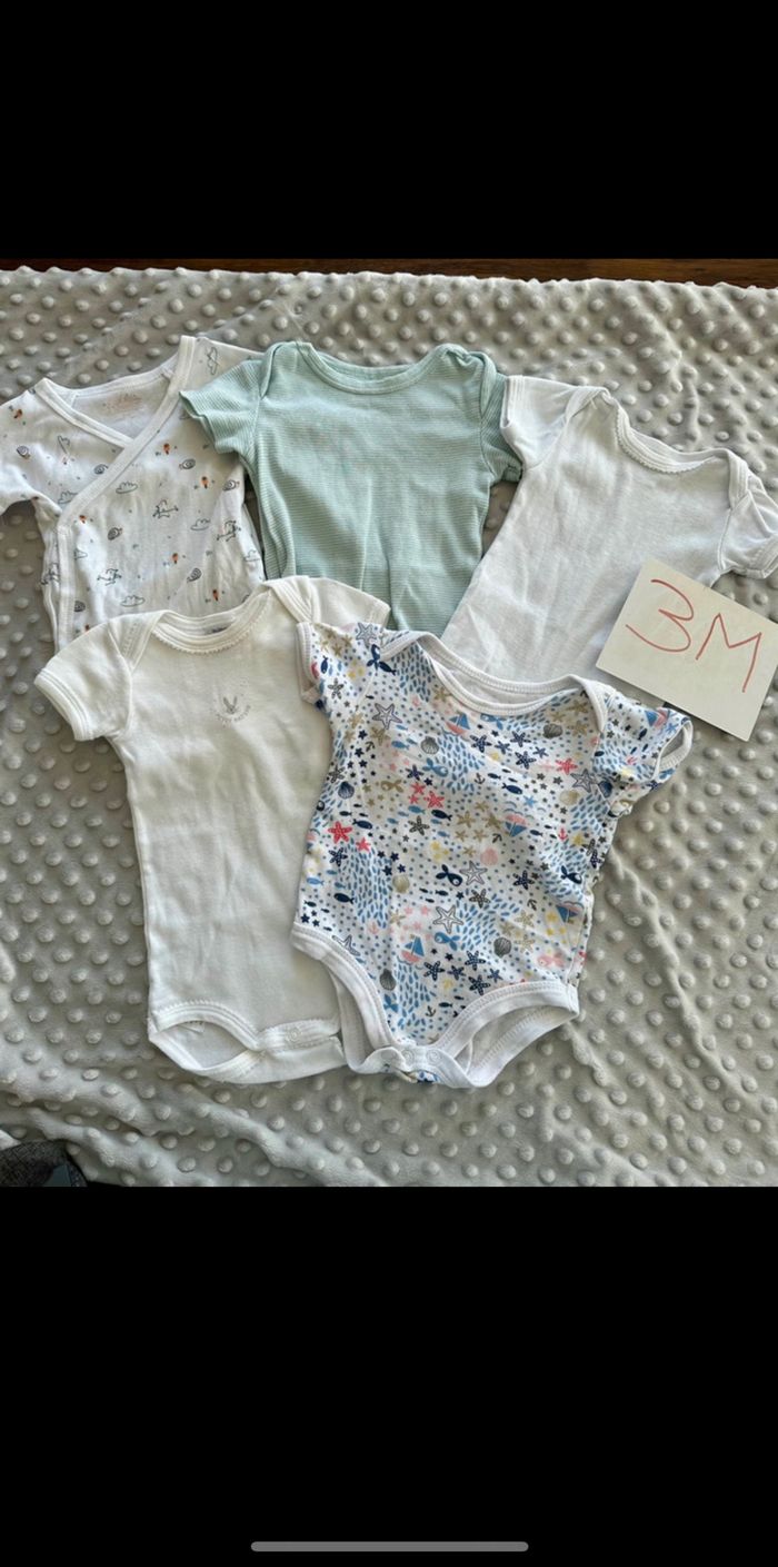 Lot de 5 bodies manches courtes taille 3 mois marques kiabi et petit bateau Parfait état