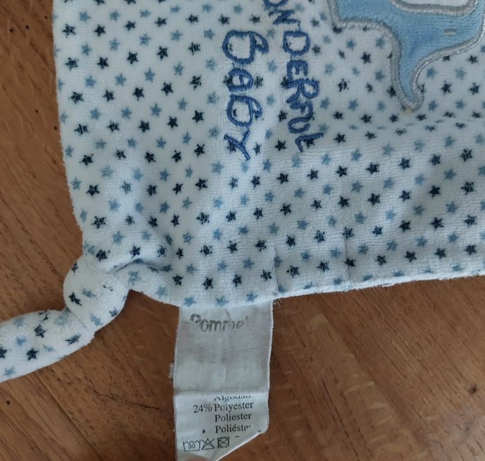 Doudou plat éléphant wonderful baby Carré étoiles bleu Pommette Bon état