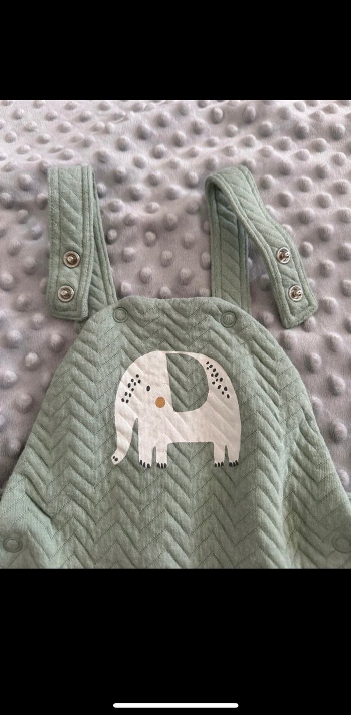 Salopette vert eau en taille 6 mois de la marque GEMO. État neuf, lavé mais jamais porté. 2 hauteurs de bretelles par fermetures pression Fermetures pression au niveau de l’entre jambes et de chaque côté à la taille. Effet un peu matelassé