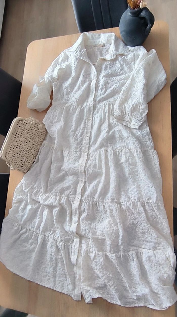 Magnifique robe longue avec petit fleurs brodées 1 er photo pour voir relief et beauté Taille S Manche retroussable Longueur 125 cm #robe longue #robeboheme #robebohemechic