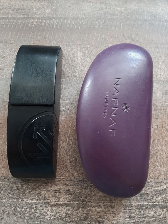 Bonjour, Je vends ce lot de 2 boîtes à lunettes Naf Naf. Quelques petites marques mais bon état général.