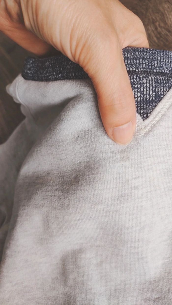 #garcon4ans_ladouks Je note le moindre défaut même à peine visible en photo. Une tache vers le col et sur une manche cf photos vers mes doigts.