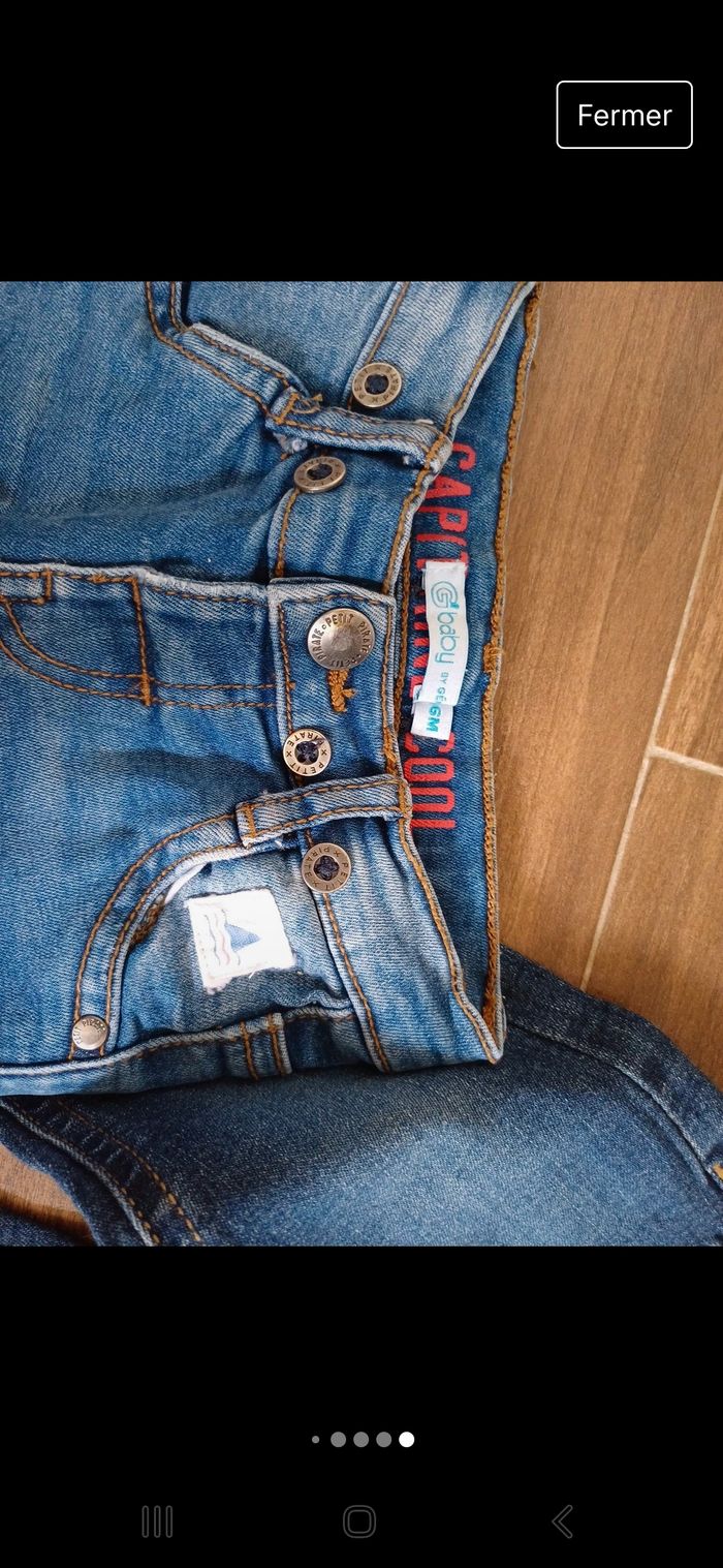 Lot de 2 jeans 1 vertbaudet TBE mais léger défaut de coloration sur le bouton voir photo 1 gemo TBE