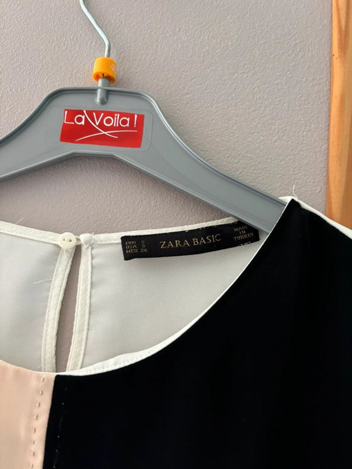 T shirt blanc avec carré rose pale et noir Zara taille S En très bon état