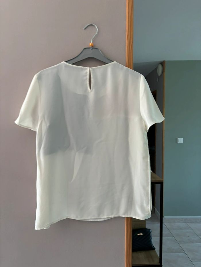 T shirt blanc avec carré rose pale et noir - photo numéro 2