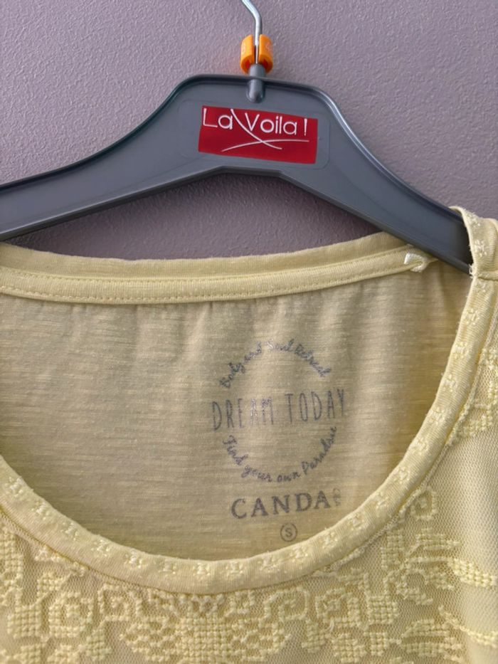 T shirt large jaune avec dentelle Canda taille s En très bon état