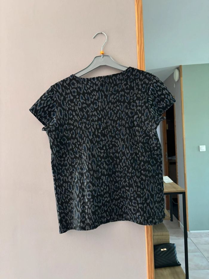 T shirt noir et bleu à motifs léopards - photo numéro 2