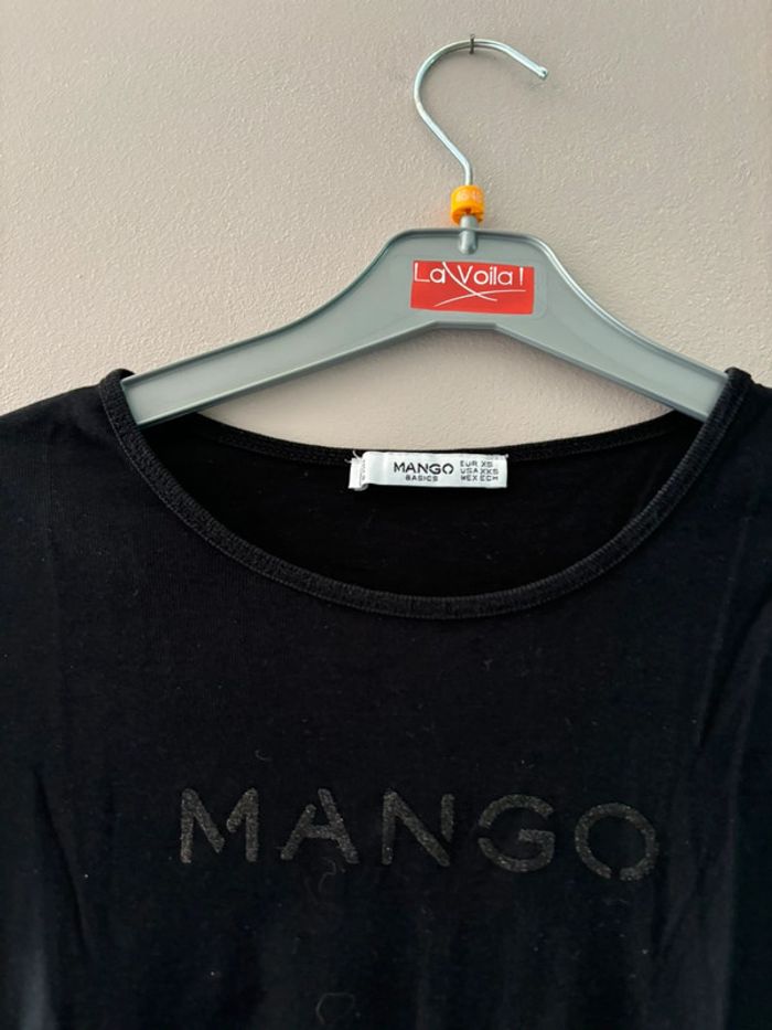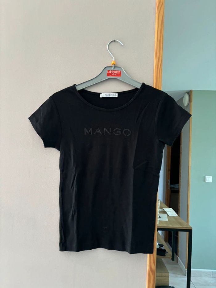 T shirt noir MANGO avec inscription en paillettes Taille XS En très bon état