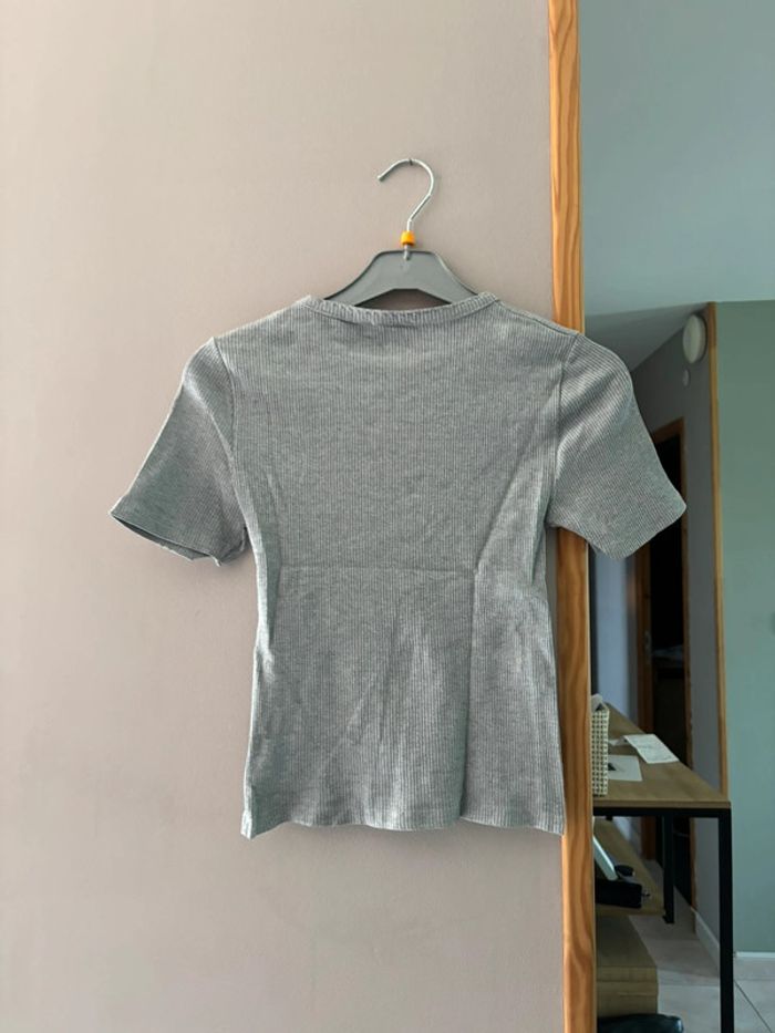 T shirt gris côtelé - photo numéro 3