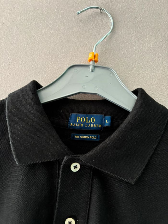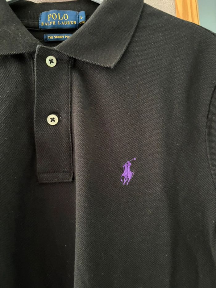 Polo noir Ralph Lauren avec logo brodé violet Skinny fit Taille L En parfait état