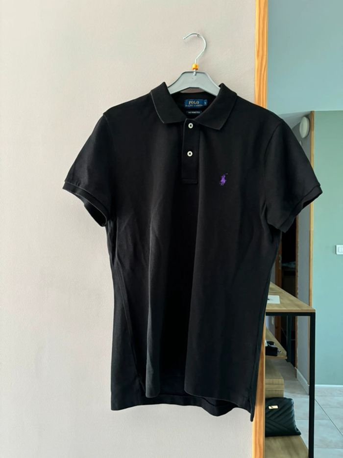 Polo noir Ralph Lauren avec logo brodé violet - photo numéro 1